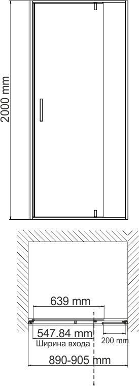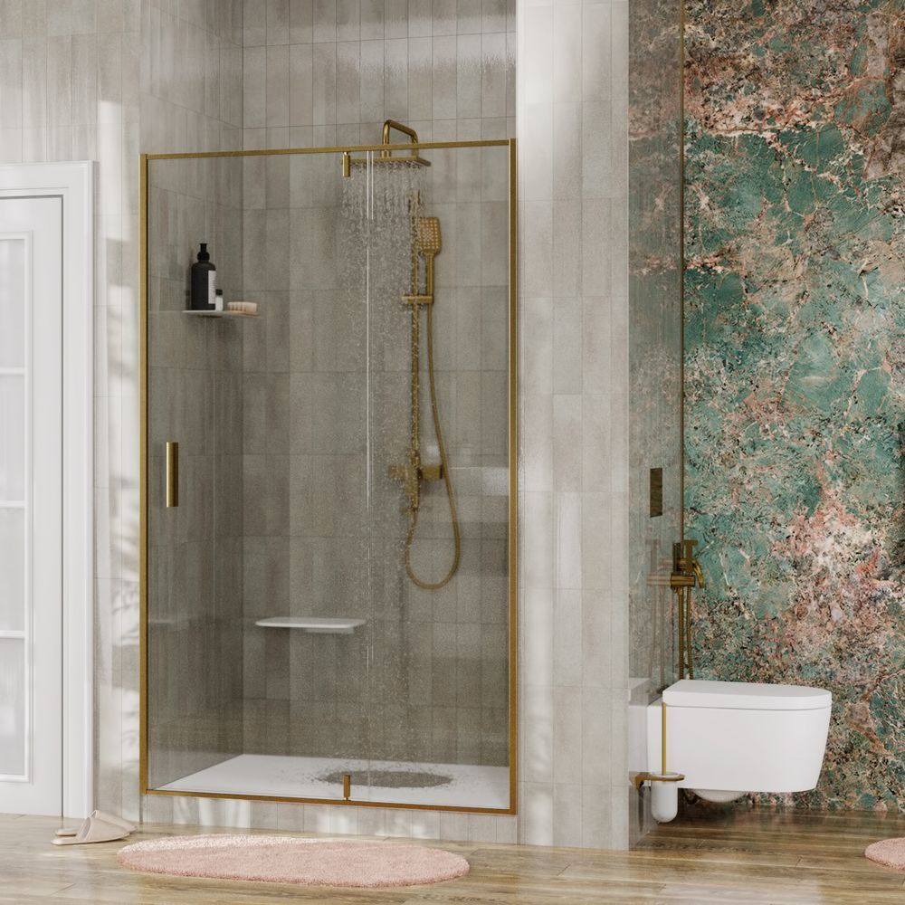 Душевая дверь WasserKraft Aisch 55P04 900х2000 мм. Цвет профиля – матовое золото, цвет стекла – прозрачное, 6 мм. Регулируемый профиль до 15 мм. Ширина входа 547 мм. Душевой поддон приобретается отдельно.