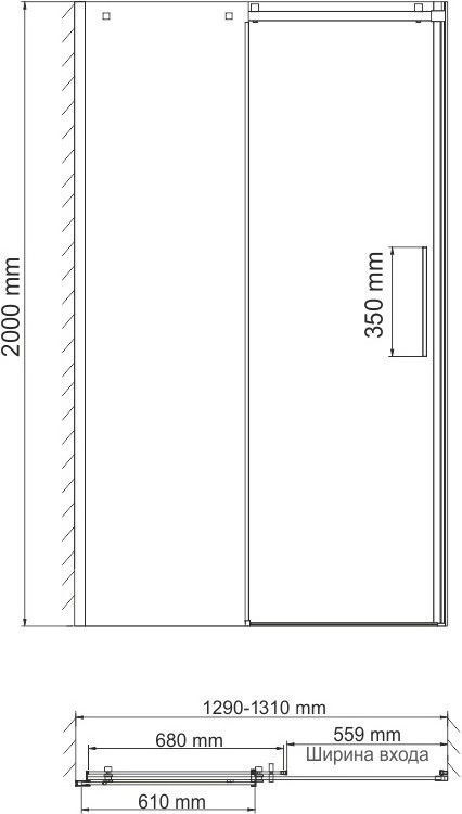 Душевая дверь WasserKraft Alme 15R30 1300х2000 мм. Цвет профиля – хром, цвет стекла – прозрачное, 8 мм. Размеры с диапазоном регулировок: 1290-1310 мм. Ширина входа: 559 мм. Душевой поддон приобретается отдельно.