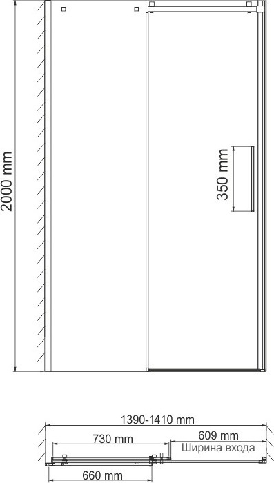 Душевая дверь WasserKraft Alme 15R31 1400х2000 мм. Цвет профиля – хром, цвет стекла – прозрачное, 8 мм. Размеры с диапазоном регулировок: 1390-1410 мм. Ширина входа: 609 мм. Душевой поддон приобретается отдельно.
