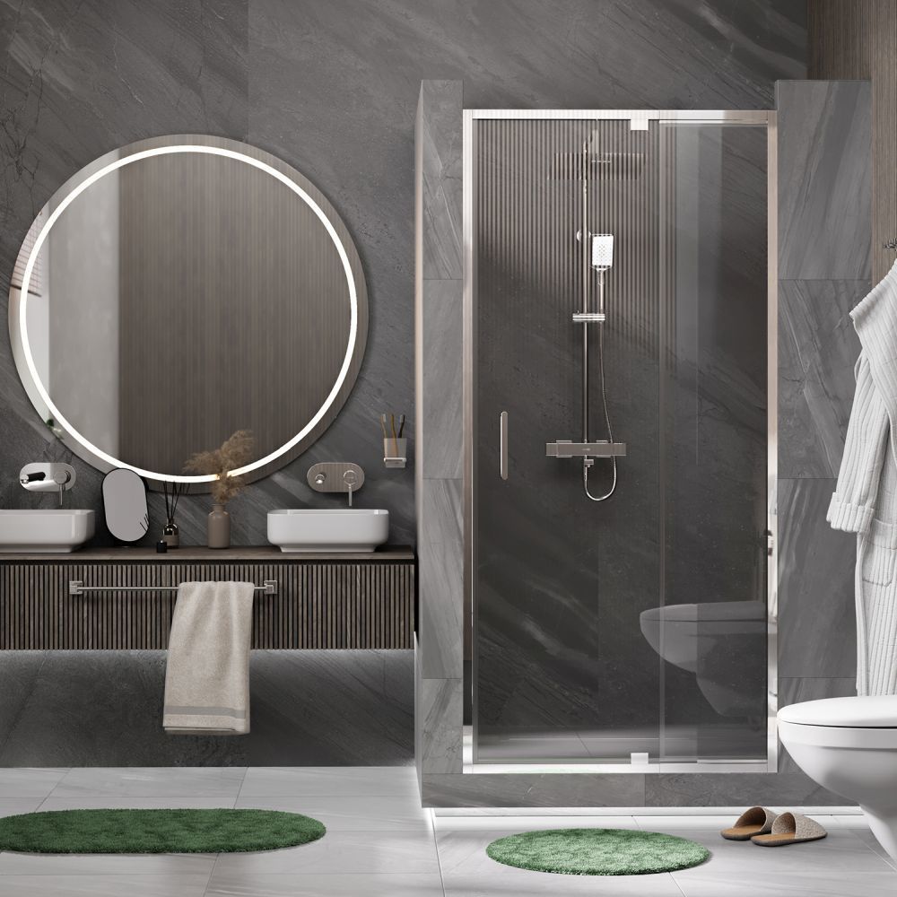 Душевая дверь WasserKraft Berkel 48P04 900х2000 мм. Цвет профиля – хром, цвет стекла – прозрачное, 6 мм. Регулируемый профиль до 30 мм. Душевой поддон приобретается отдельно.