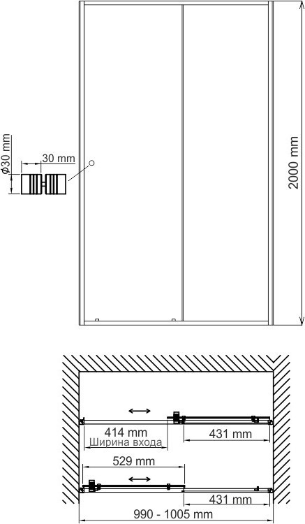 Душевая дверь WasserKraft Dill 61S12 1000х2000 мм. Цвет профиля – черный, цвет стекла – прозрачное, 6 мм. Регулируемый профиль до 4 мм. Душевой поддон приобретается отдельно.