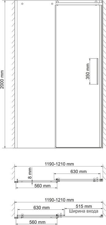 Душевая дверь WasserKraft Dinkel 58R05 1200х2000 мм. Цвет профиля – хром, цвет стекла – прозрачное, 8 мм. Регулируемый профиль до 13 мм. Душевой поддон приобретается отдельно.