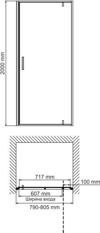 Душевая дверь WasserKraft Elbe 800х2000 мм. Цвет профиля чёрный, цвет стекла прозрачное 6 мм. Габариты регулировки (790-805)х2000 мм. Душевой поддон приобретается отдельно.
