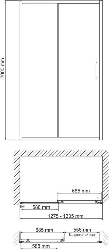 Душевая дверь WasserKraft Main 41S30 1300х2000 мм. Цвет профиля – хром, цвет стекла – прозрачное, 6 мм. Регулируемый профиль до 15 мм, ширина входа 556 мм. Душевой поддон приобретается отдельно.
