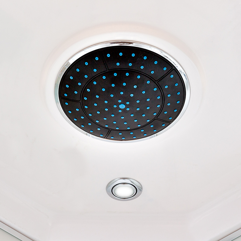 Стильная душевая кабина с внутренней сборкой AvaCan EM 2712 L с электрикой сочетает в себе высокую функциональность, практичность и надежность. Для изготовления применяют безопасное закаленное стекло толщиной 5 мм, надежно фиксируемое алюминиевым профилем. Цвет профиля хром. В комплекте зеркало, сенсорный пульт управления, душевой гарнитур, тропический (верхний) душ, переключатель режимов, вентиляция, полочки, тропический (верхний) душ, вентиляция, радио.