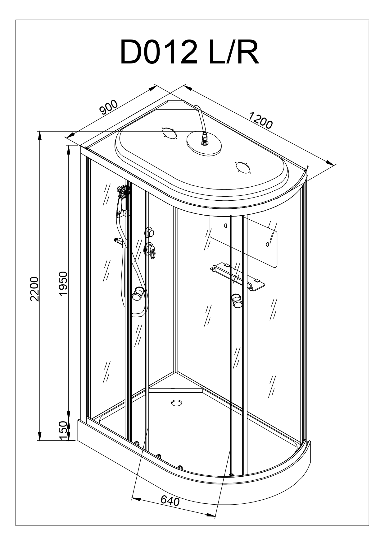 Стильная душевая кабина с внутренней сборкой AvaCan D012S L сочетает в себе высокую функциональность, практичность и надежность. Для изготовления применяют безопасное закаленное стекло толщиной 4 мм, надежно фиксируемое алюминиевым профилем. Цвет профиля хром. В комплекте сифон, крючок, полочка, зеркало, смеситель, переключатель режимов, душевой гарнитур, тропический (верхний) душ,,вставка в поддон.