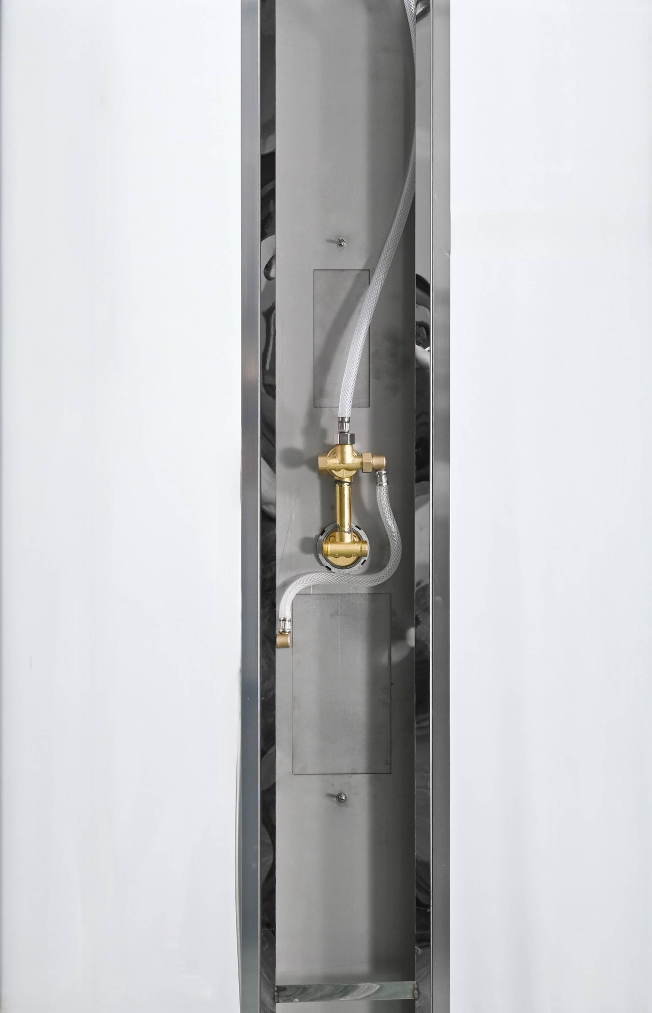 Стильная душевая кабина AvaCan сочетает в себе высокую функциональность, практичность и надежность. При изготовлении применяется безопасное закаленное стекло, надежно фиксируемое алюминиевым профилем. Профиль сделан из алюминия повышенной прочности. Сборка без силикона (увеличивает срок службы, защищает от протечек), внутренняя сборка (облегчает установку и ревизию; позволяет установить в ограниченном пространстве и обойтись без демонтажа других сантехнических приборов), смеситель резьбовой (без хомутов). Двойные металлические ролики дверей (распределение нагрузки на два ролика, увеличивают срок службы). Душевая штанга(позволяет регулировать по высоте ручную лейку), ручная арома-лейка с витамином С (картридж в комплекте,есть возможность замены или удаления картриджа), полочки(из стекла, с ограничителем), сифон с гидрозатвором.