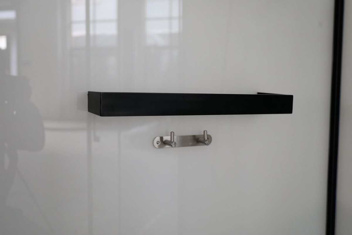 Комплектация: металлический верхний душ; большое зеркало на задней стенке; 45 см полка в обрамление из чистой стали; двойной стальной крючок для банных принадлежностей; сифон Nessun odore антизапах; металлическая ручная лейка.