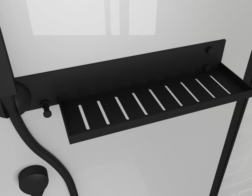 - Стильная душевая со стеклянными задними стенками и черным профилем подчеркнет интерьер Вашей ванной комнаты.