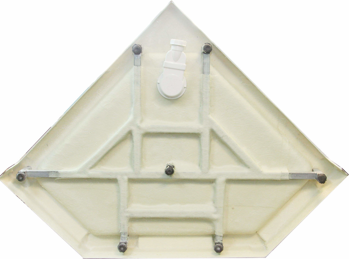 Очаровательная пятиугольная душевая кабина с верхним и ручным душем. Дверь распашная, стекло 6мм. Деревянная решетка в подарок!