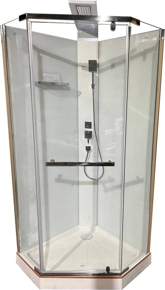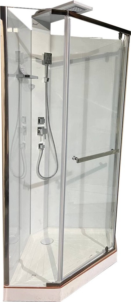 - Элегантная пятиугольная душевая кабина.