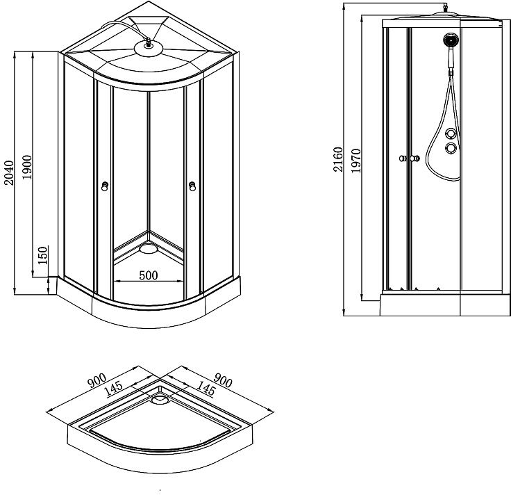Душевая кабина Loranto Neo с низким поддоном, размер 900х900х2050 мм, профиль чёрный, стекло прозрачное 5 мм. Задние стенки стеклянные белые.