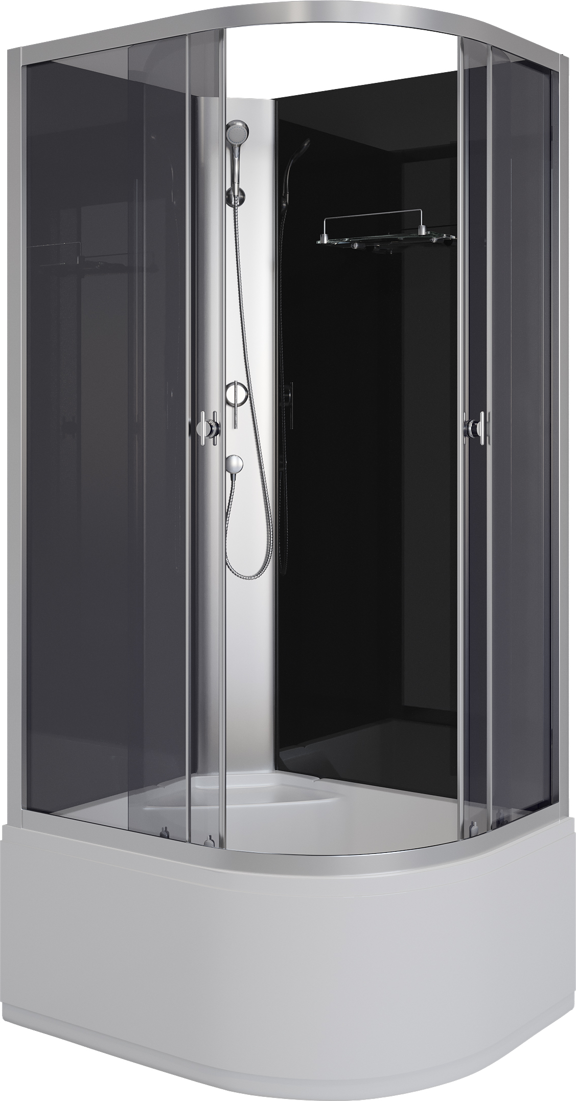 - Комплектация: Поддон, панель, сифон, профиль, передние и задние стенки, двери, дополнительная лейка, ролики, полочка.