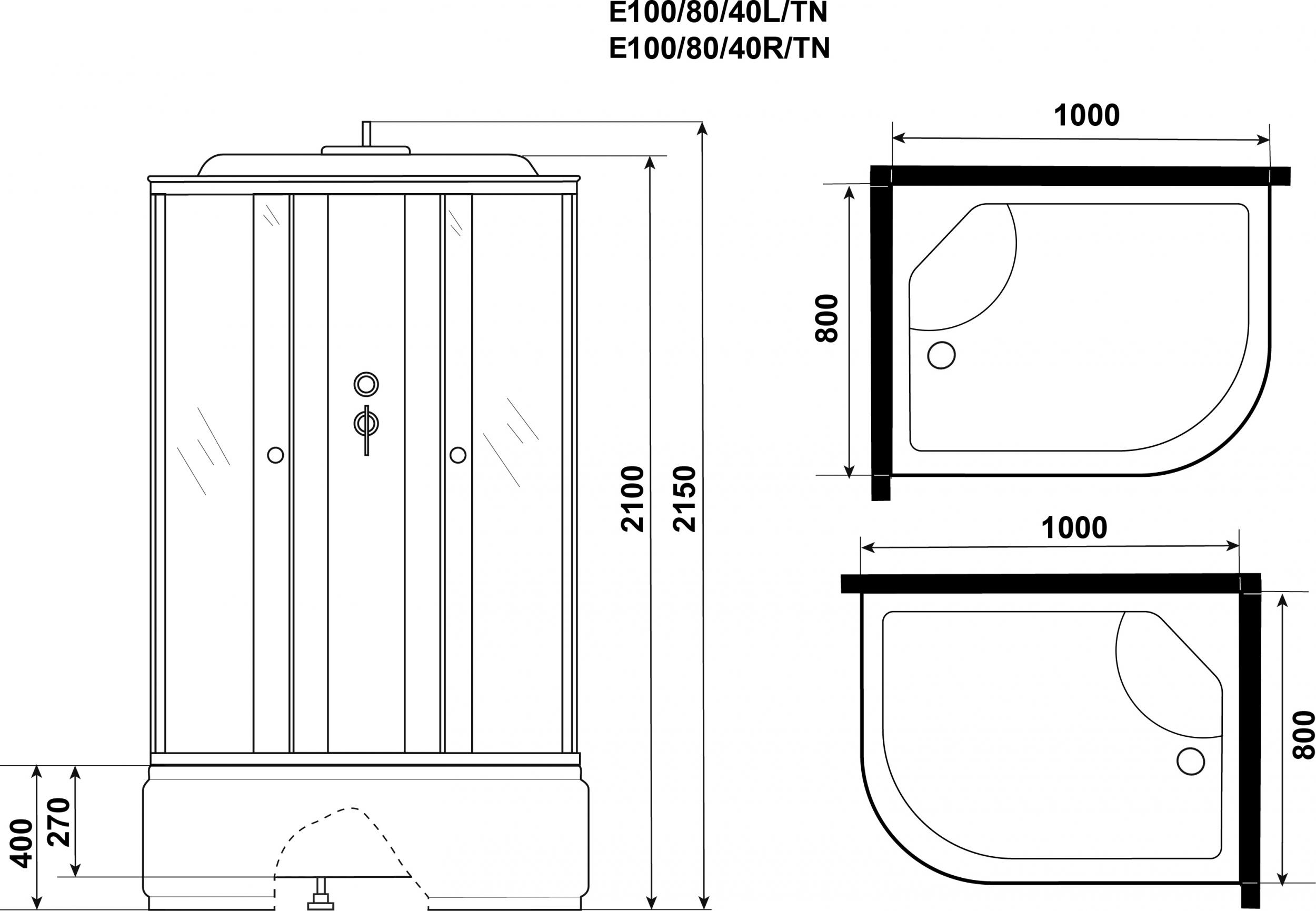 Душевая кабина Niagara 100x80 см E100/80/40R/TN, хром/тонированное