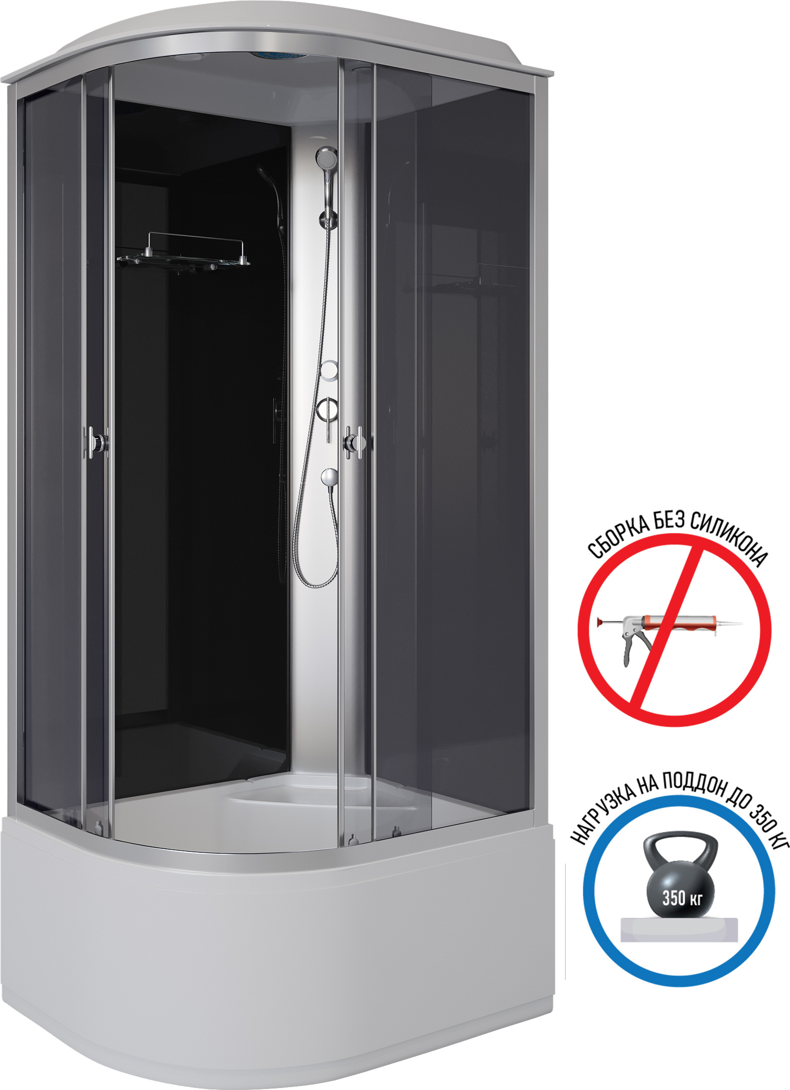 - Комплектация: Поддон, панель, сифон, профиль, передние и задние стенки, двери, тропический душ, дополнительная лейка, ролики.