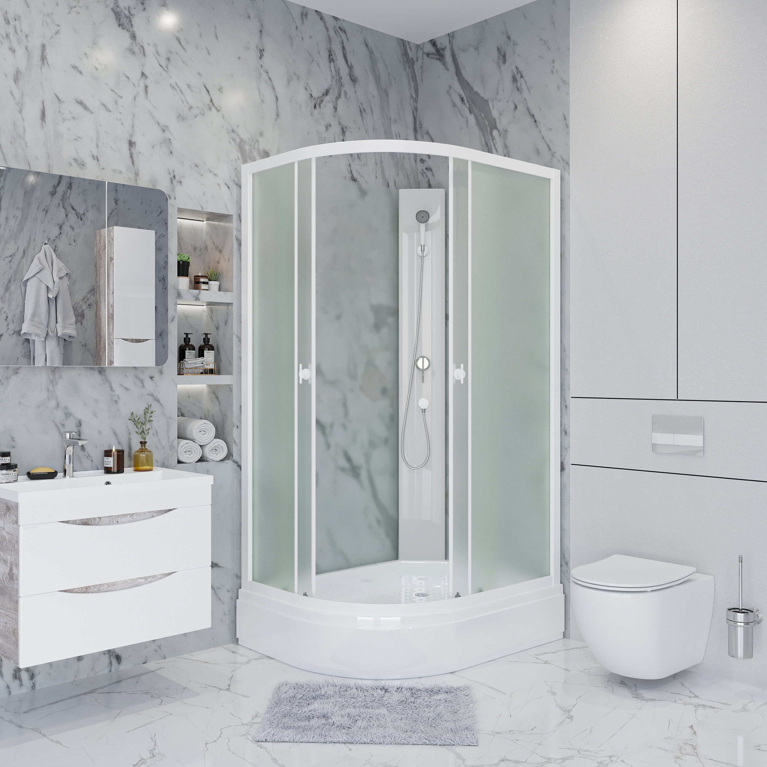 - Стенки передние закаленное стекло 4 мм - белое матовое.