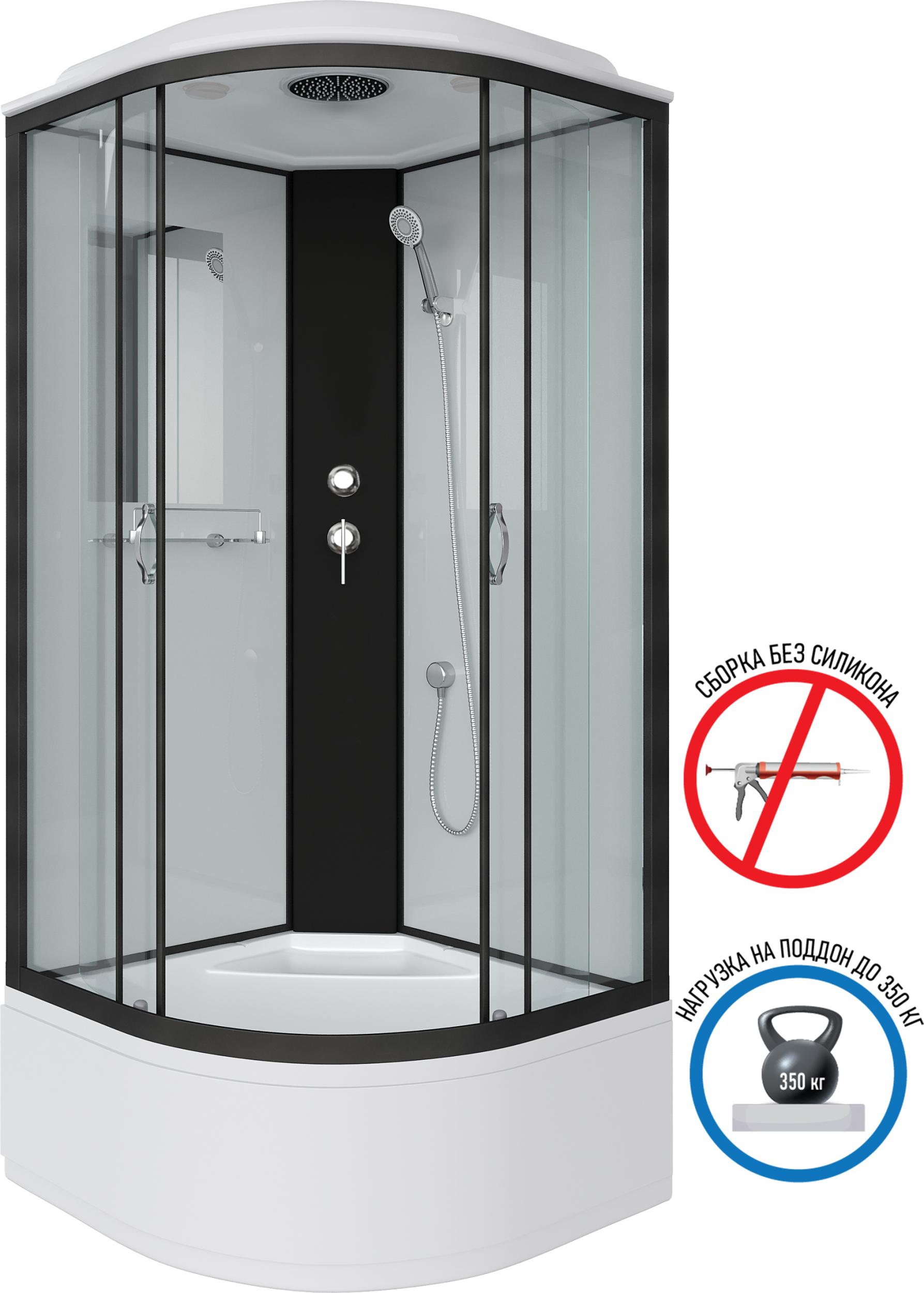 - Бессиликоновая душевая кабина Niagara NG 6707-14 черный профиль, высокий поддон