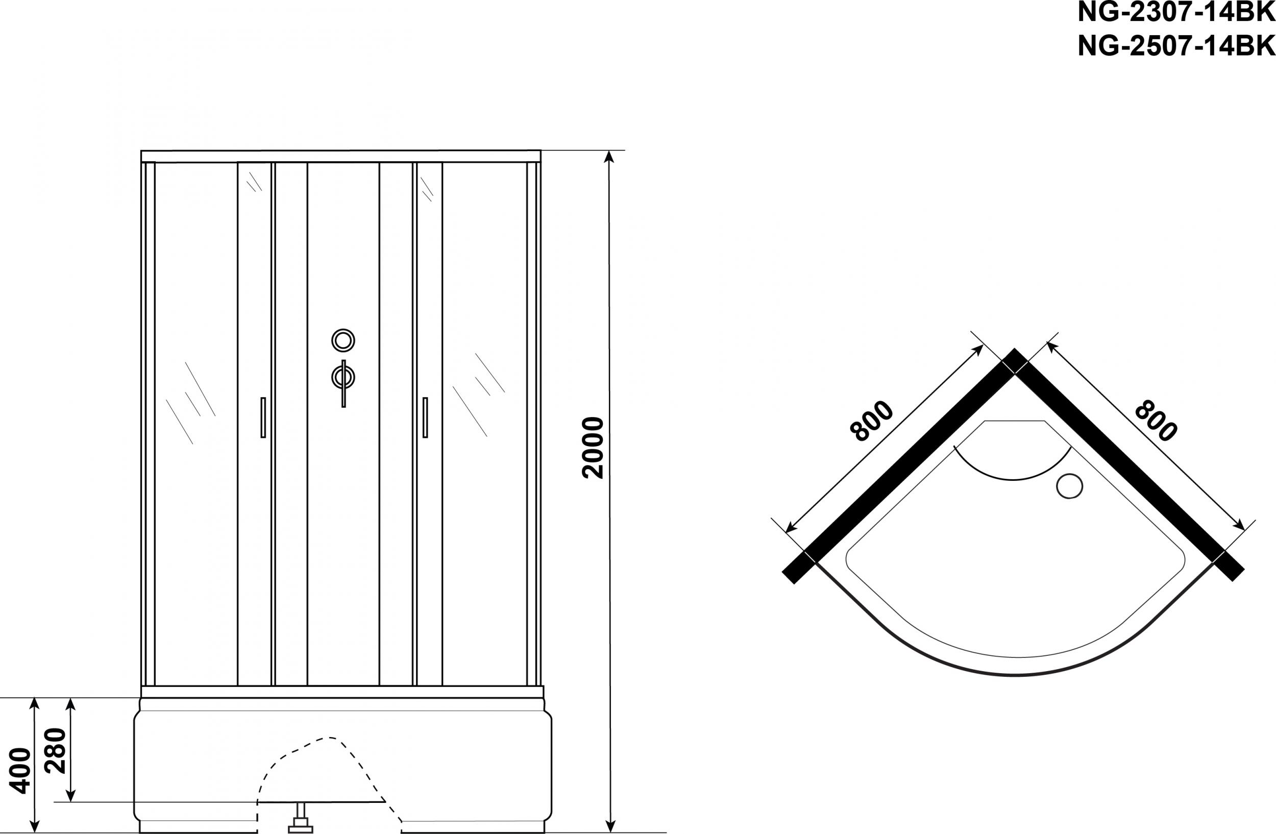 - Бессиликоновая душевая кабина Niagara NG 2507-14BK Без крыши