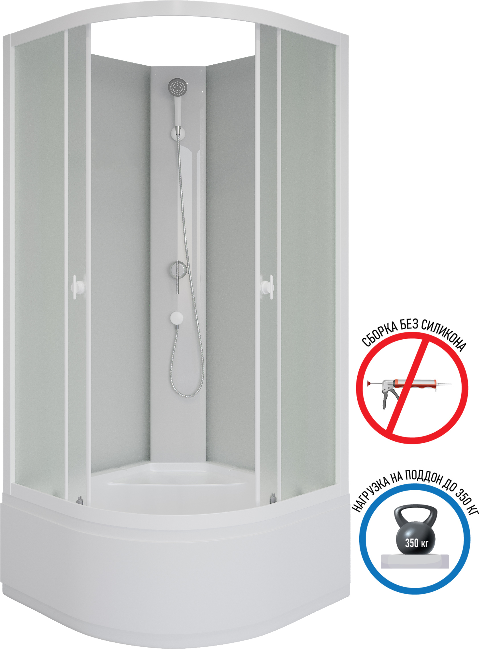 - Душевая кабина, в простой комплектации серия Promo, основные функции ручная лейка.
