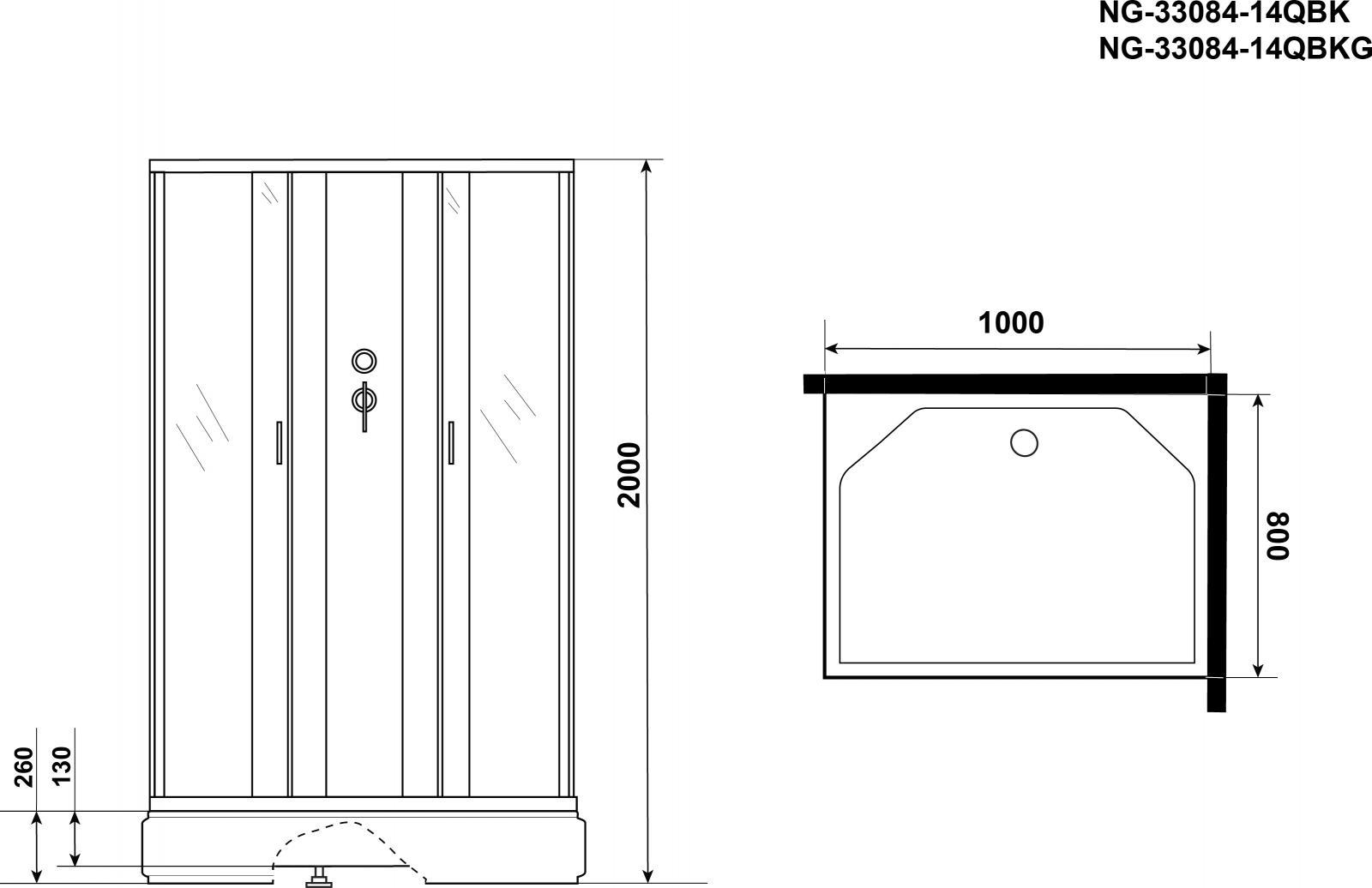 - Бессиликоновая душевая кабина Niagara NG 33084-14QBK Без крыши