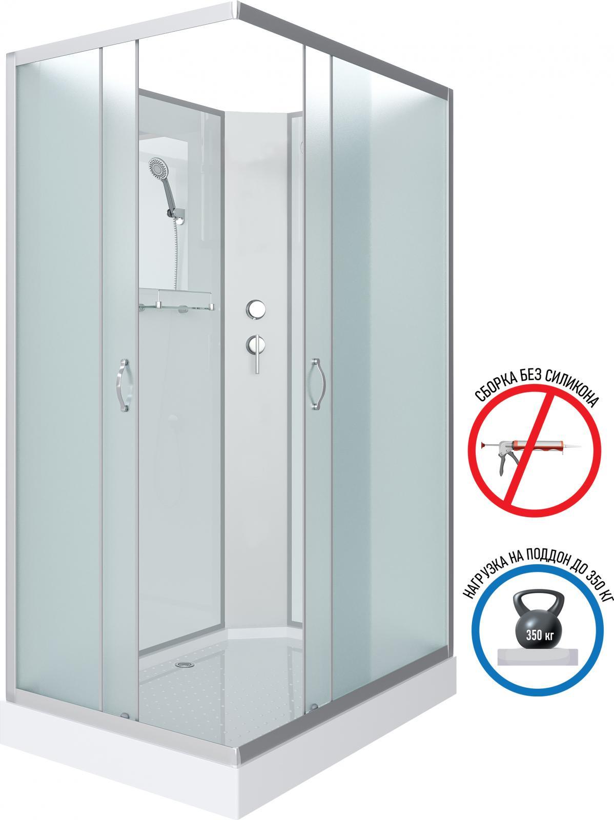 - Передние стенки и двери - каленое стекло, белое матовое.
