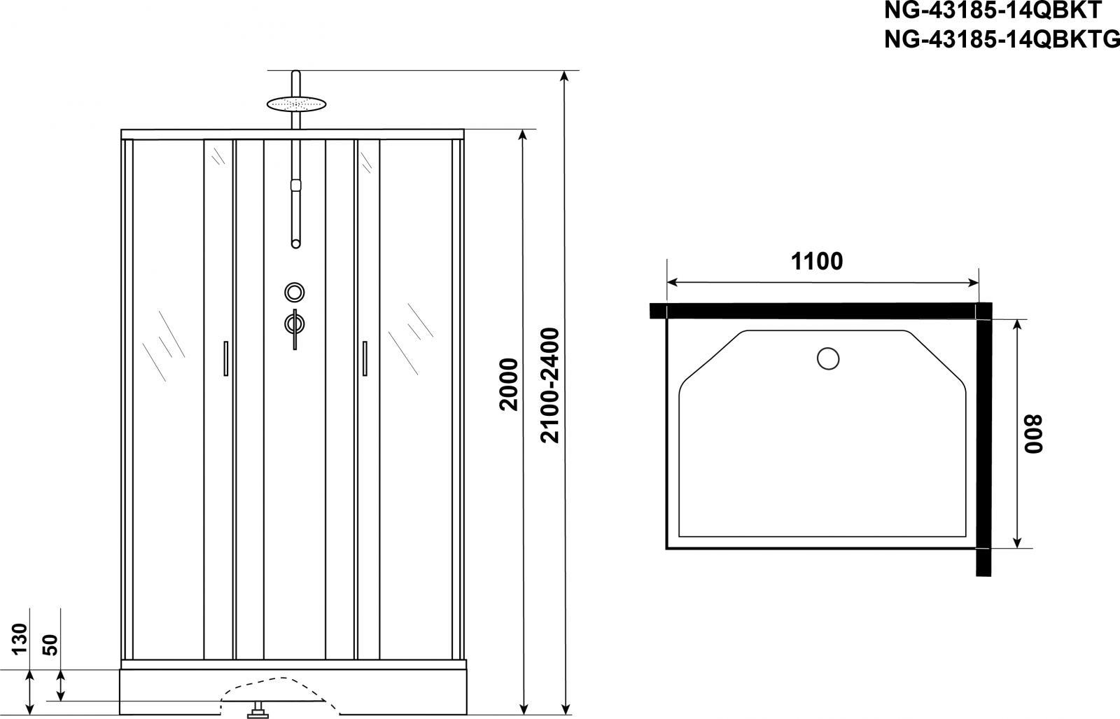 - Бессиликоновая душевая кабина Niagara NG 43185-14QBKT Без крыши с тропическим душем