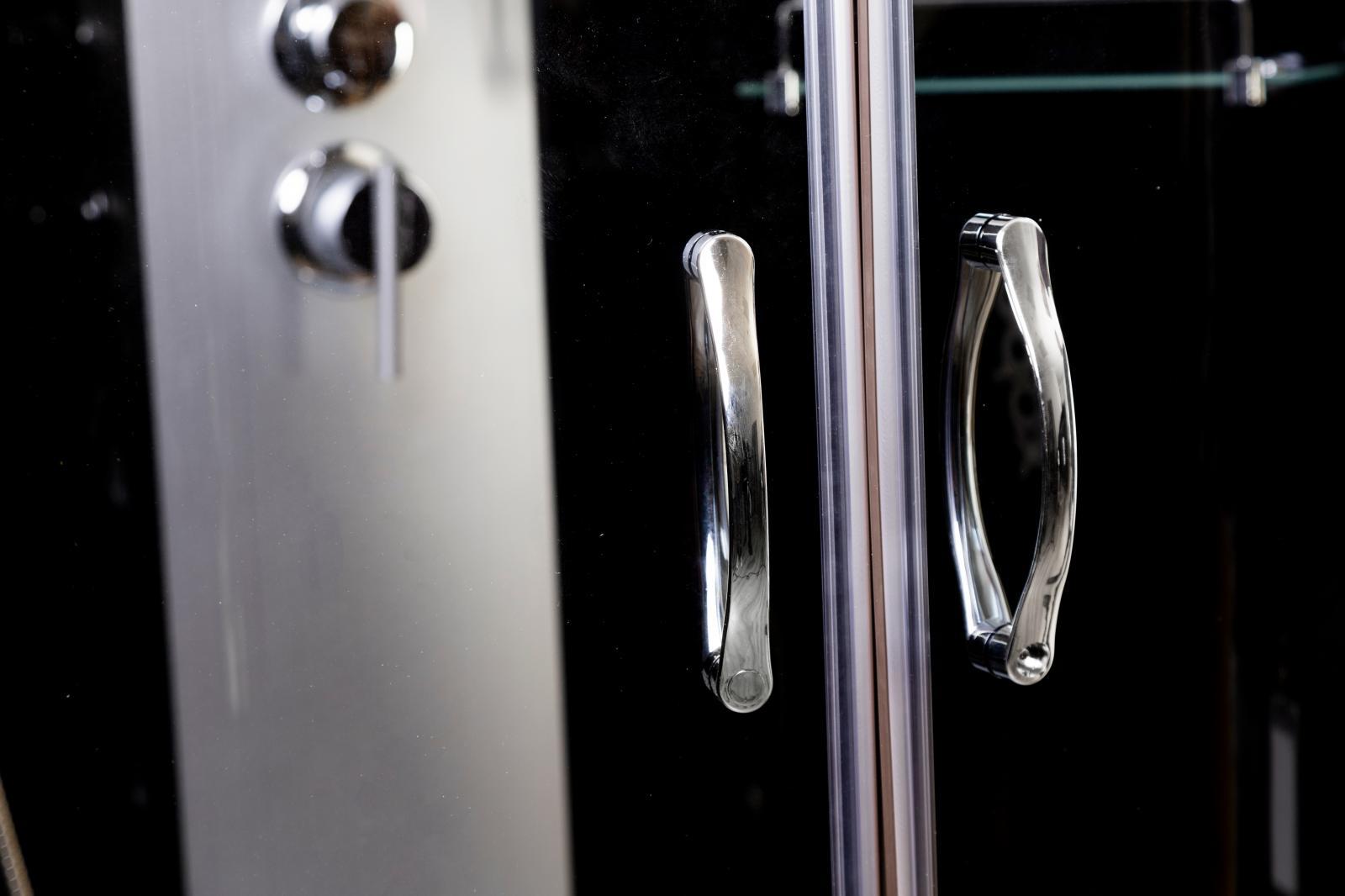 - Кабина достаточно вместительная, крепкий поддон, крепкое каленое стекло, из которого изготовлены стенки и двери кабины.