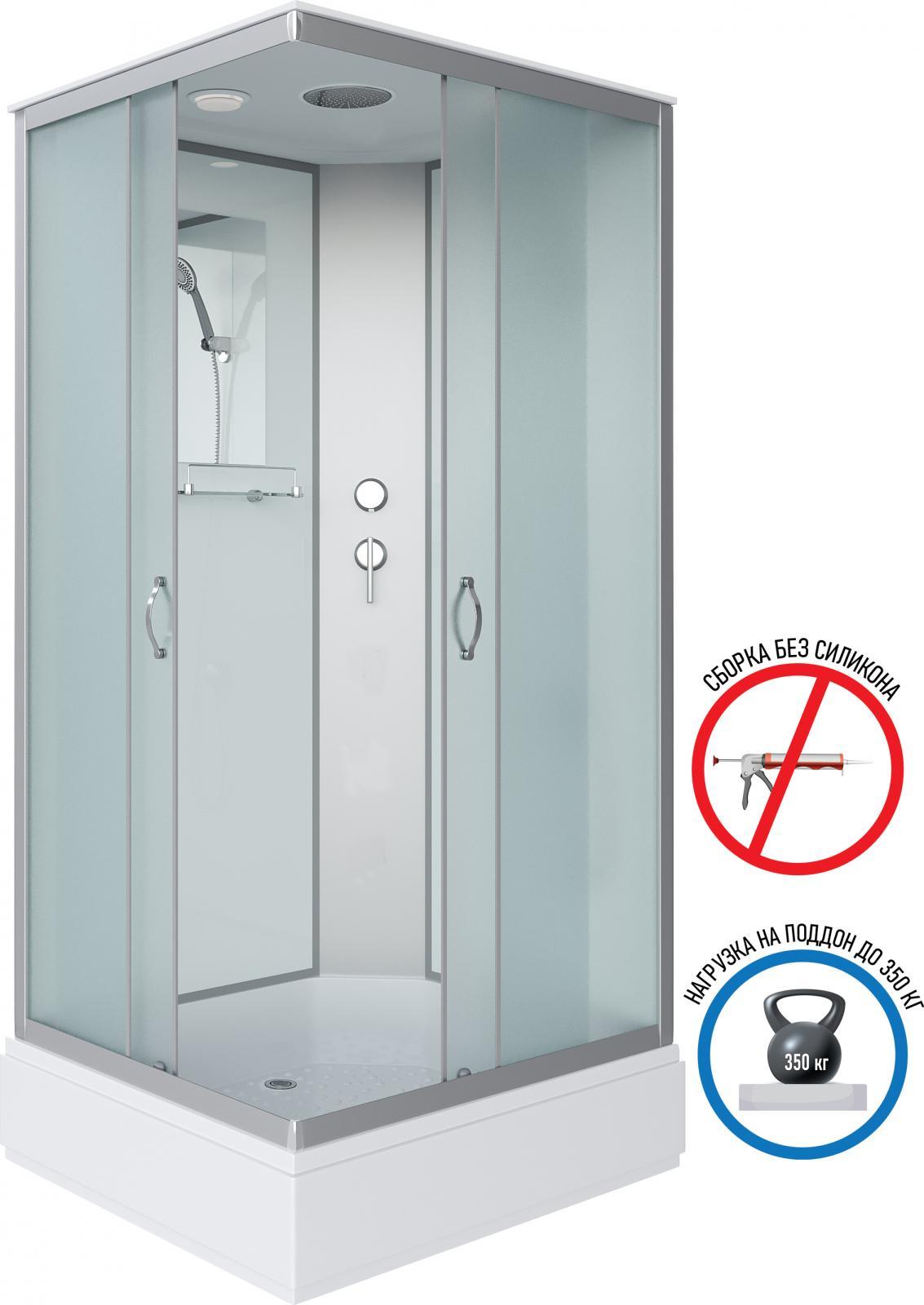 - Передние стенки и двери - каленое стекло, белое матовое.