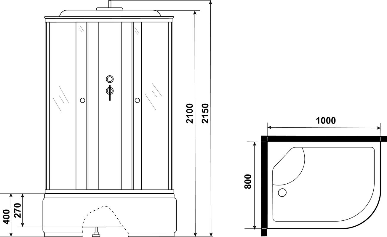 Душевая кабина Niagara Eco E100/80/40L/TN с высоким поддоном, размер 1000x800x2150 мм, левосторонняя, цвет задних стенок чёрный, ширина входа 460 мм. Высокий поддон и сифон в комплекте.