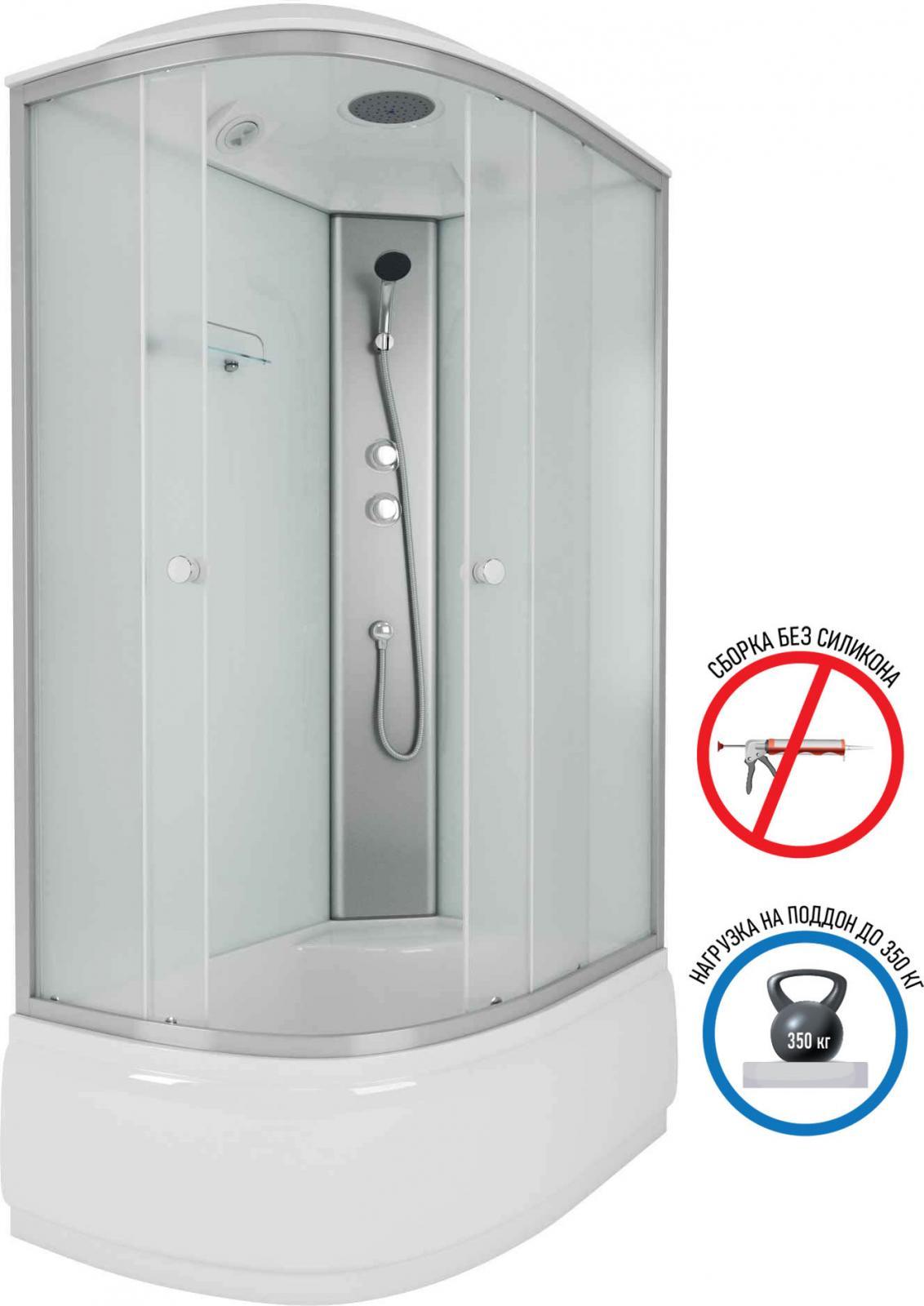- Комплектация: Поддон, панель, сифон, профиль, передние и задние стенки, двери, тропический душ, дополнительная лейка, ролики, полочка.