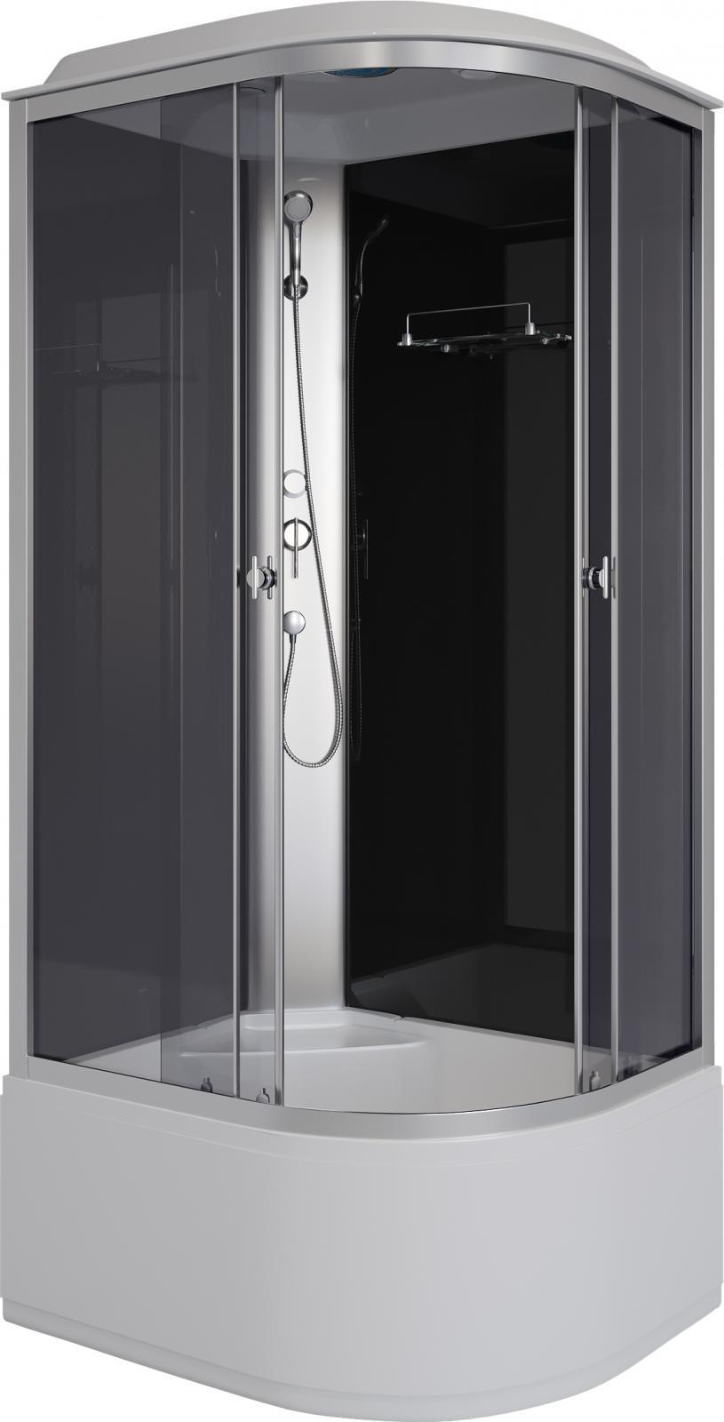 - Комплектация: Поддон, панель, сифон, профиль, передние и задние стенки, двери, тропический душ, дополнительная лейка, ролики, полочка.