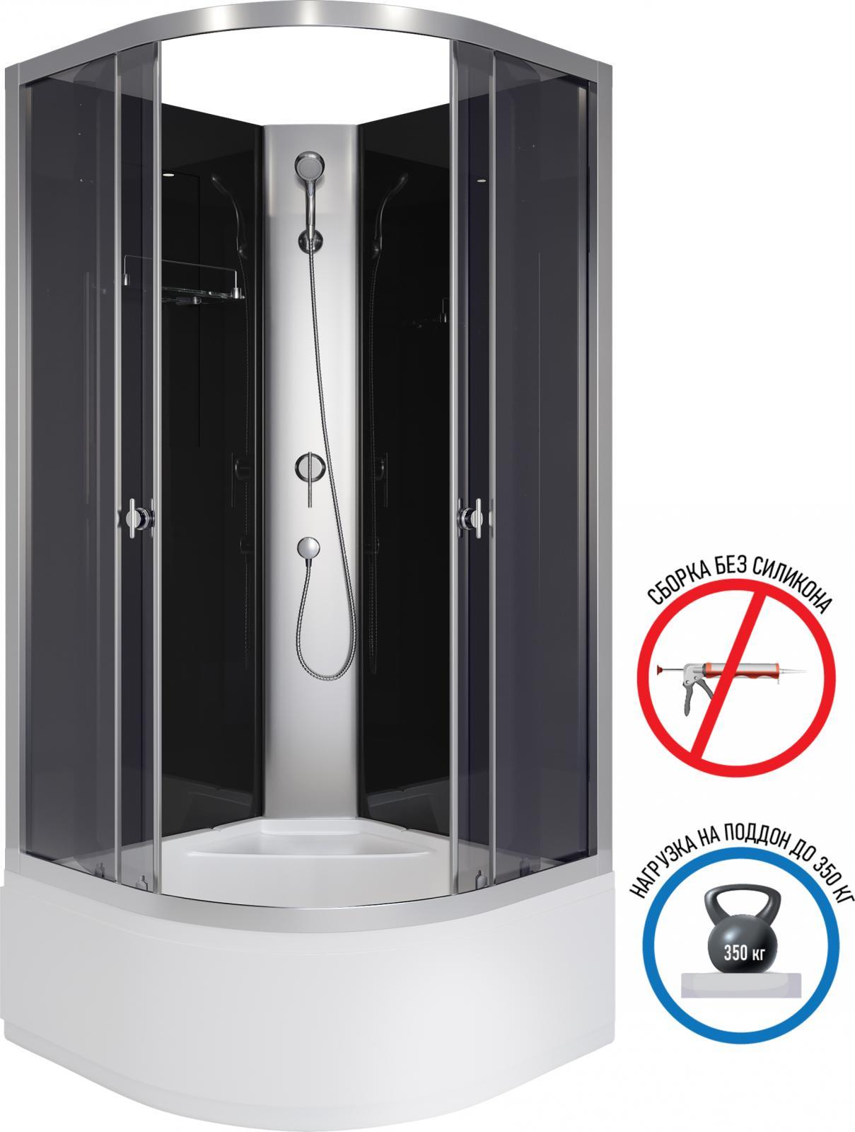 Душевая кабина Niagara Eco 90x90 см E90/40/TN/BK, хром матовый/тонированное (безсиликоновая сборка)