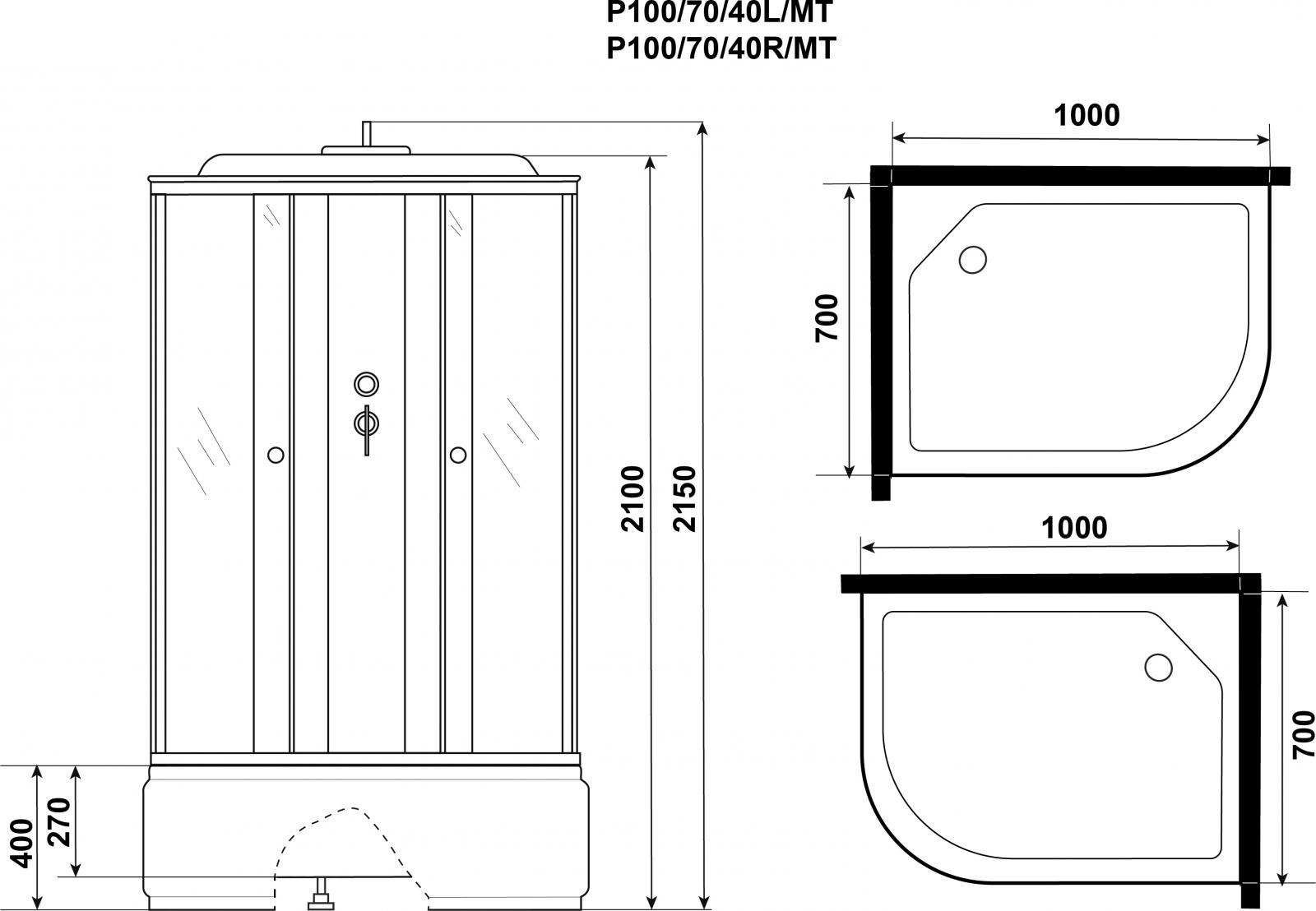 Описание Душевая кабина Niagara P100/70/40L/MT
