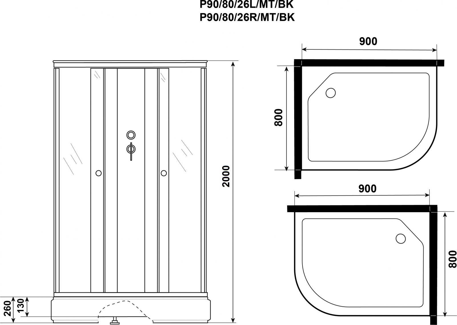 Описание Душевая кабина Niagara P90/80/26R/MT/BK