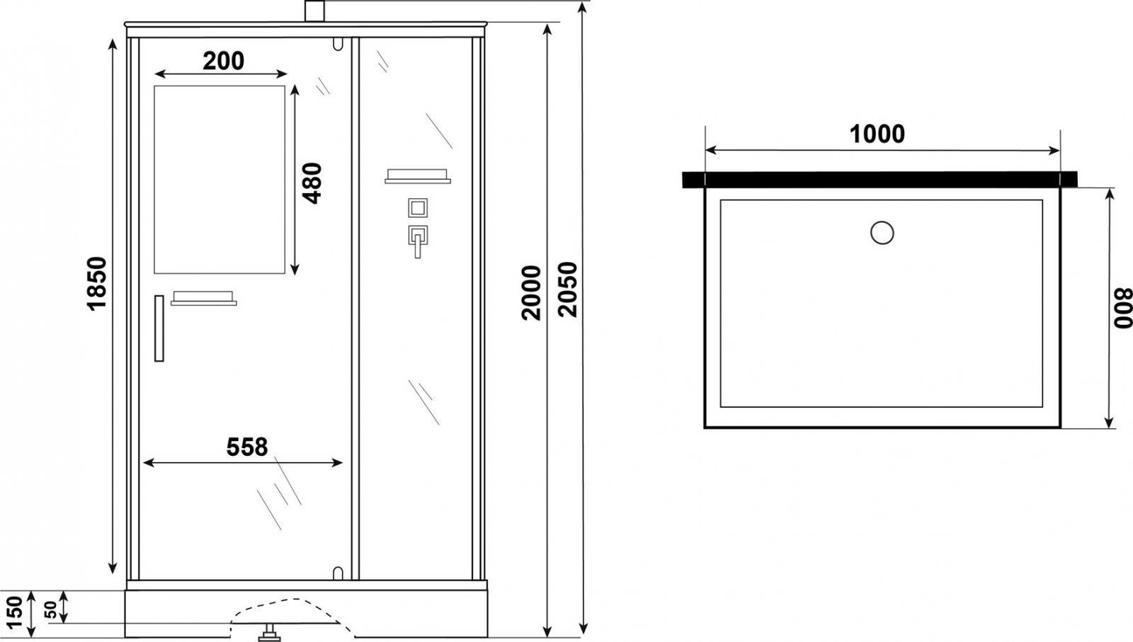 - Размер душевой кабины 100x80x205 см.