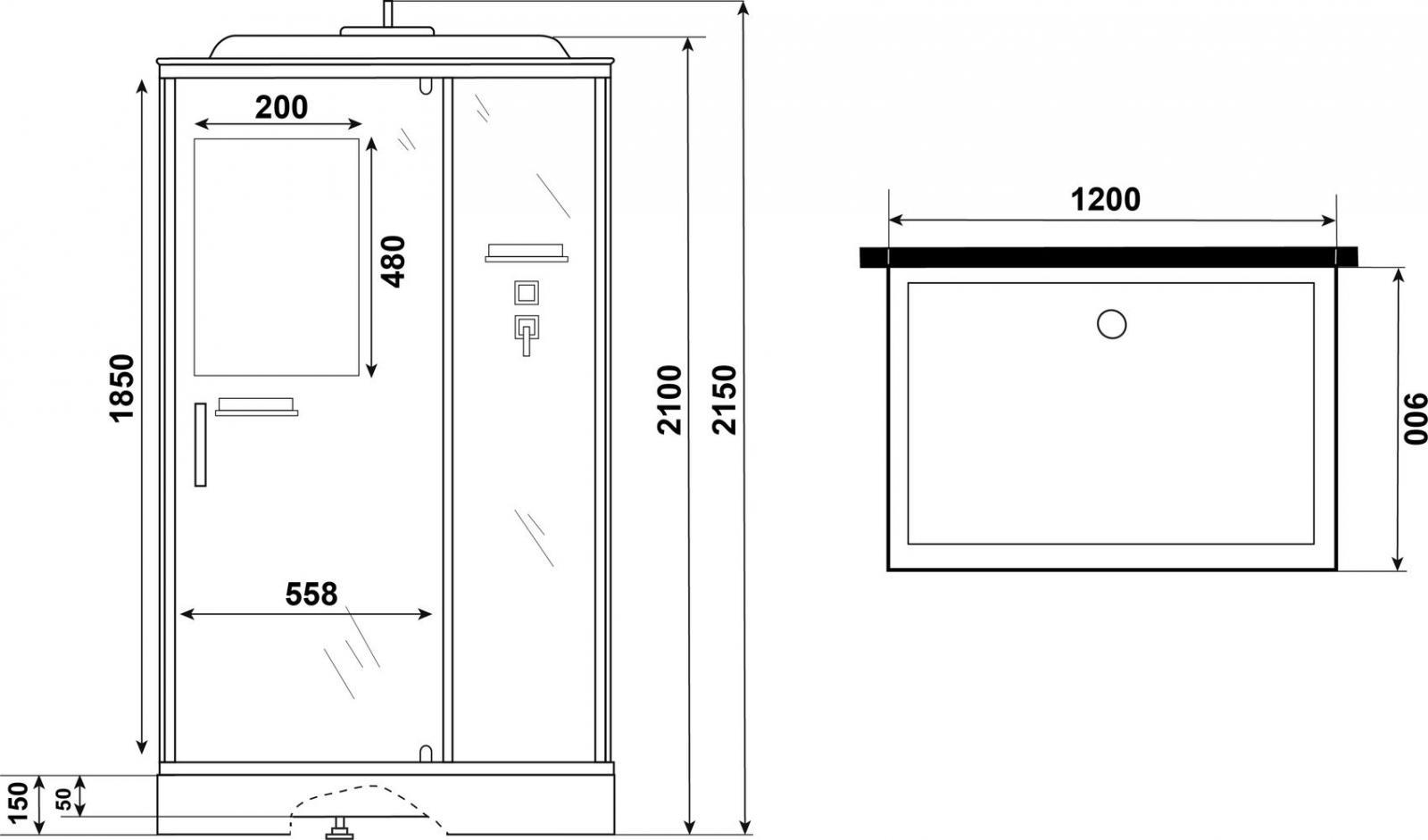 Душевая кабина Niagara Standart ST120/90/15Q, размер 1200х900х2150 мм, стекло прозрачное, профиль белый.