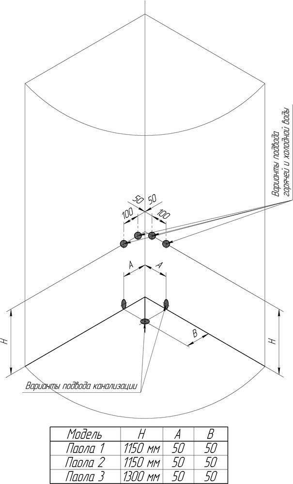 - собранная душевая кабина с поддоном на раме-подставке с устройством слива