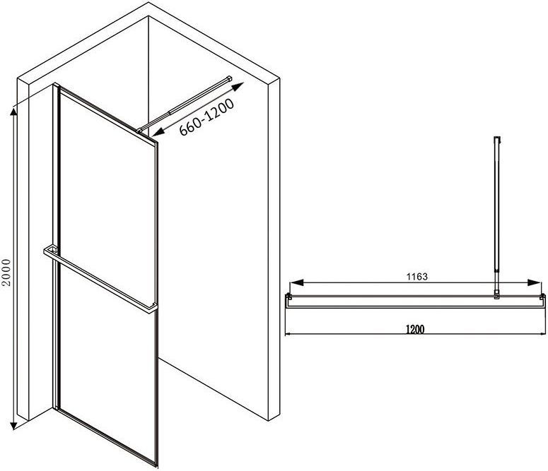 Душевая перегородка Abber Immer Offen AG60120B 1200х2000 мм. Цвет профиля – черный, цвет стекла – прозрачное, 6 мм. Душевой поддон приобретается отдельно.