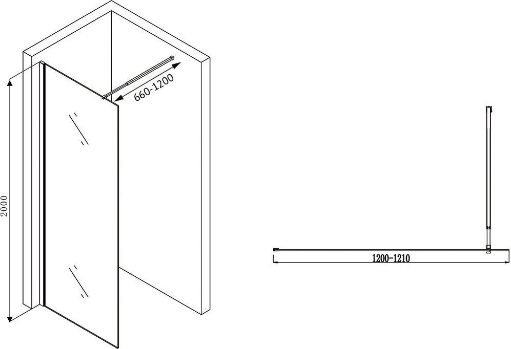 Душевая перегородка Abber Immer Offen AG61120 1200х2000 мм. Цвет профиля – хром, цвет стекла – прозрачное, 6 мм. Душевой поддон приобретается отдельно.