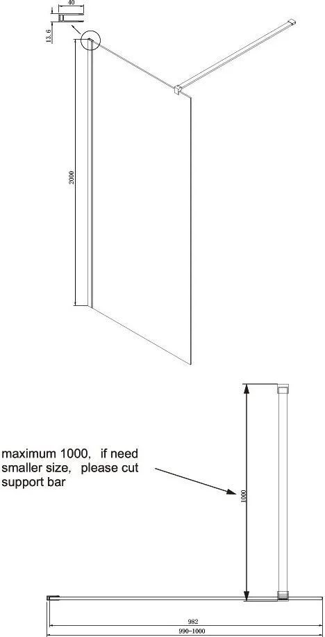 Душевая перегородка Ambassador Walk-in с кронштейном, размер 1000х2000 мм, профиль хром, стекло прозрачное. Габариты регулировки (990-1000)x2000 мм, ширина входа 1000 мм.