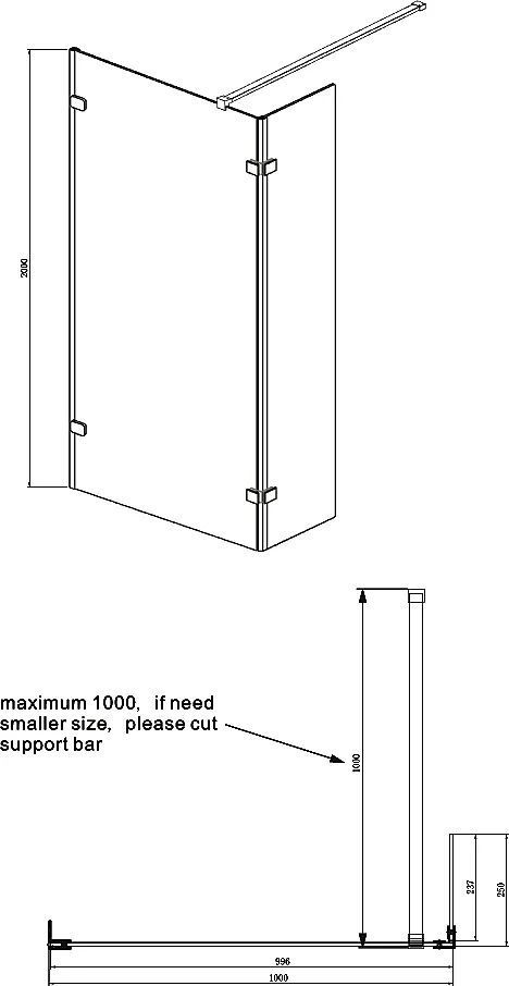 Душевая перегородка Ambassador Walk-in с кронштейном, размер 1000х2000 мм, профиль хром, стекло прозрачное. Ширина входа 1000 мм.
