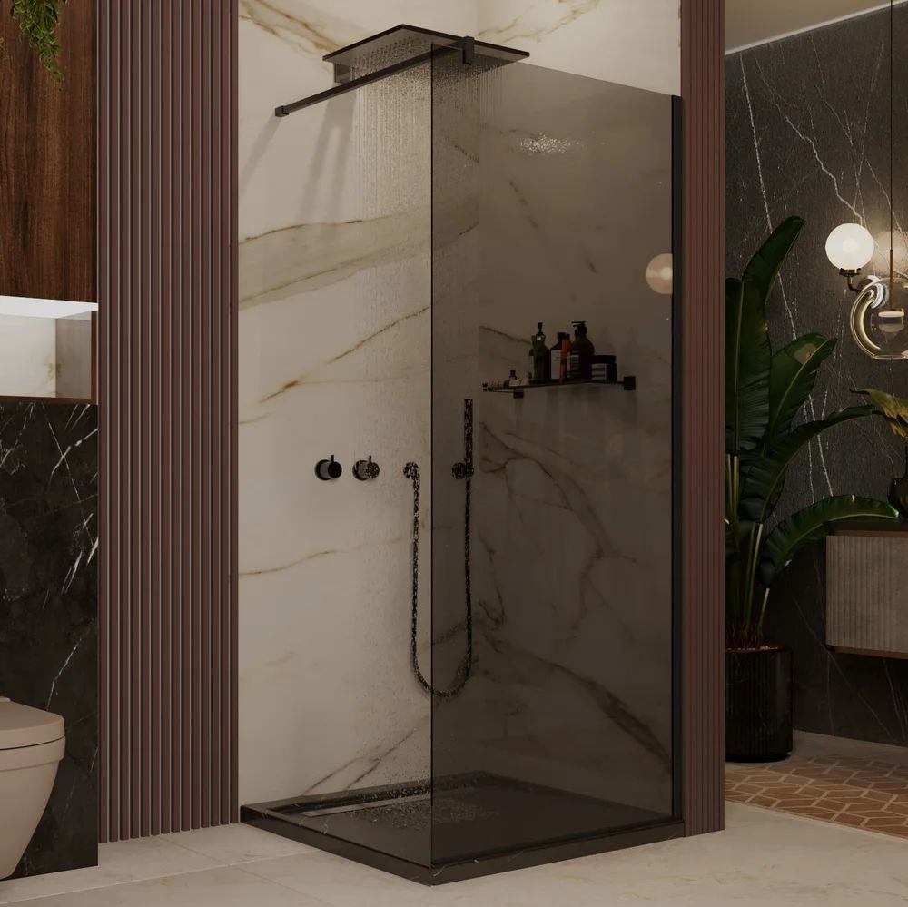 Душевая перегородка Ambassador Walk-in 100 см 15032222 с кронштейном (стекло 8 мм) чёрный/тонированное