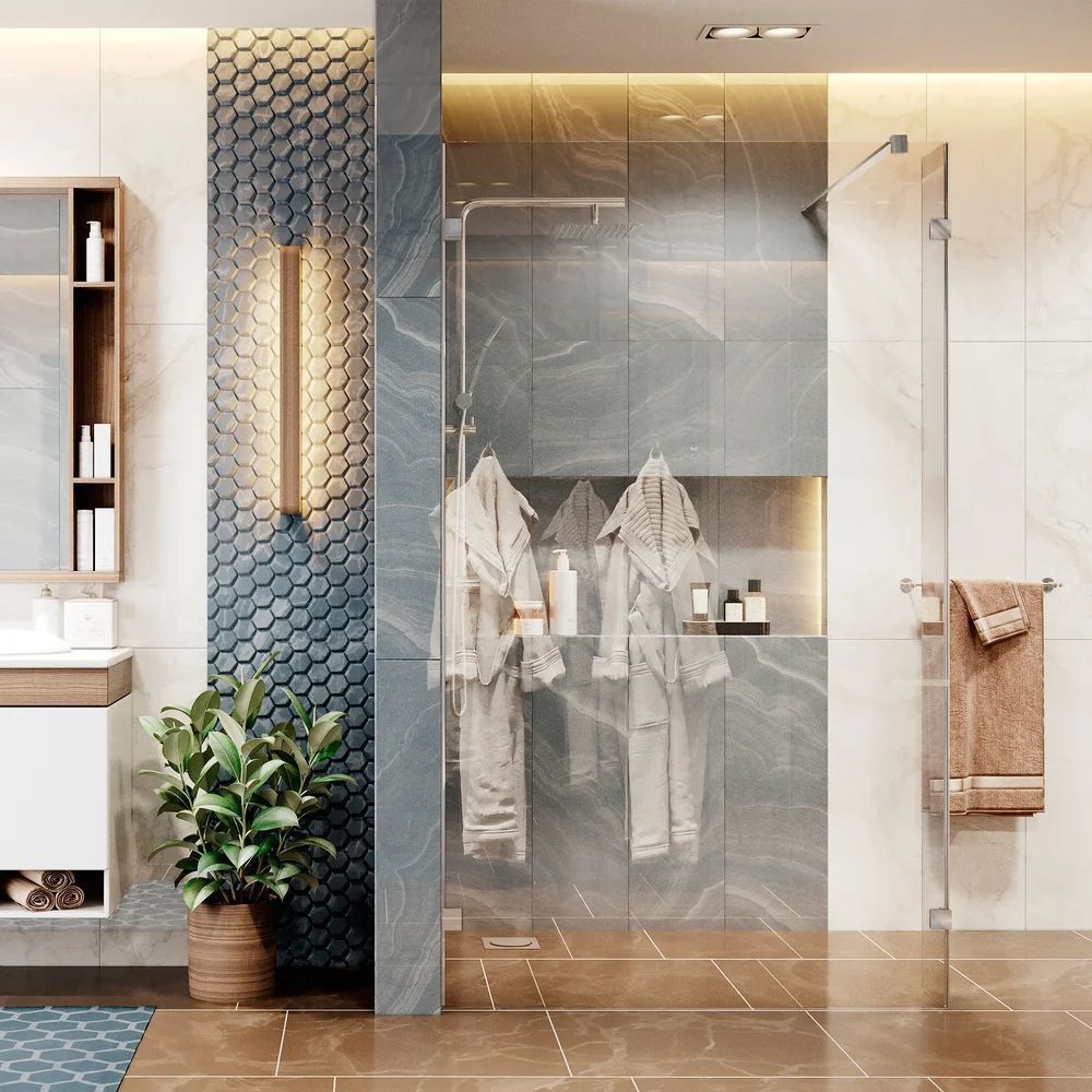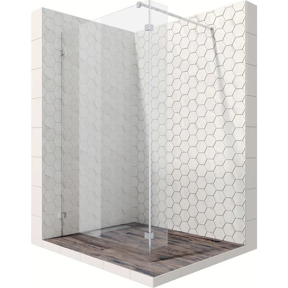 Душевая перегородка Ambassador Walk-in с кронштейном, размер 1100х2000 мм, профиль хром, стекло прозрачное. Ширина входа 1000 мм.