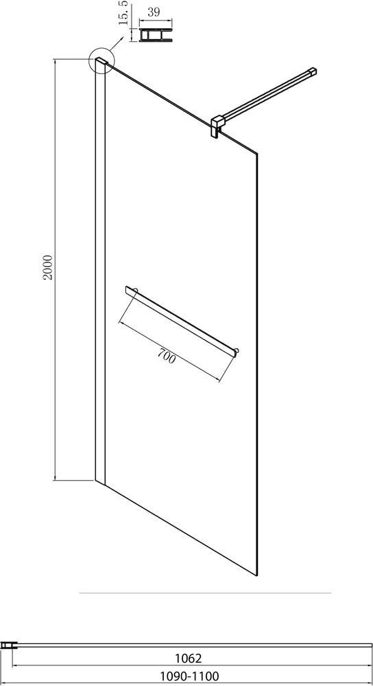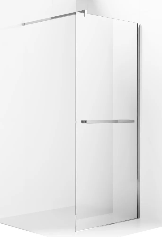 Душевая перегородка Ambassador Walk-in с кронштейном, размер 1100х2000 мм, профиль хром, стекло прозрачное. Габариты регулировки (1090-1100)х2000 мм, ширина входа 1000 мм.