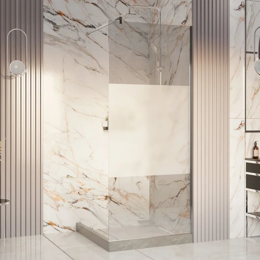 Душевая перегородка Ambassador Walk-in с кронштейном, размер 1100х2000 мм, профиль хром, стекло узор. Габариты регулировки (1090-1100)х2000 мм, ширина входа 1000 мм.