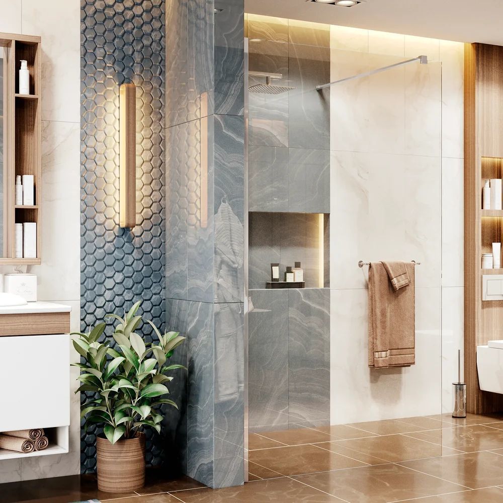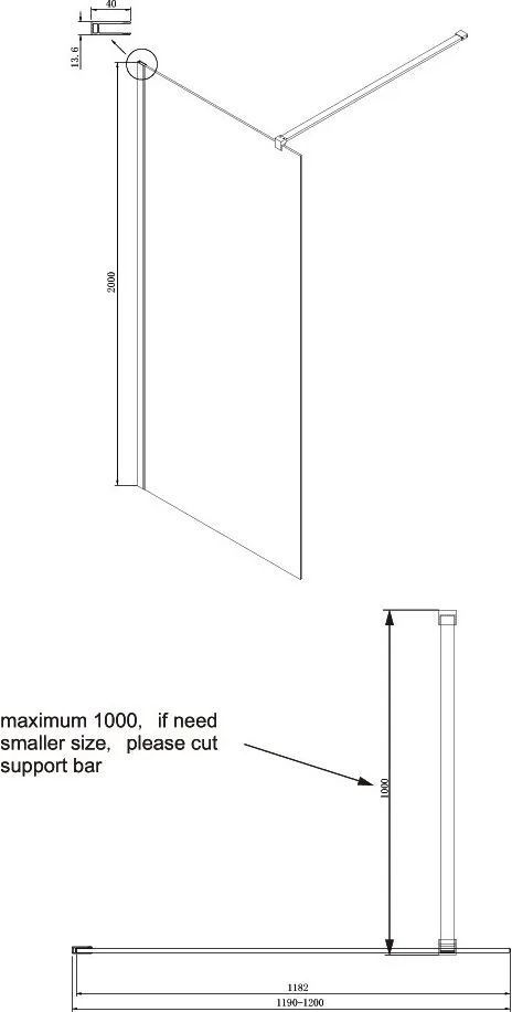 Душевая перегородка Ambassador Walk-in с кронштейном, размер 1200х2000 мм, профиль хром, стекло прозрачное. Габариты регулировки (1190-1200)x2000 мм, ширина входа 1000 мм.