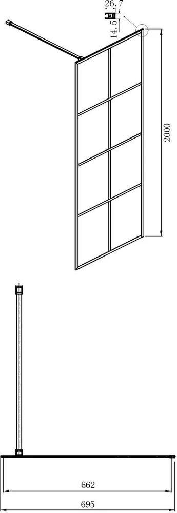 Душевая перегородка Ambassador Walk-in с кронштейном, размер 695х2000 мм, профиль чёрный, стекло прозрачное. Ширина входа 1000 мм.