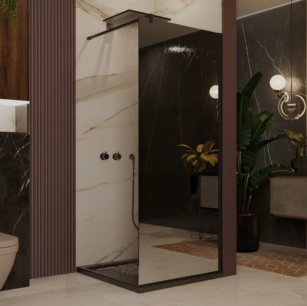 Душевая перегородка Ambassador Walk-in 80 см 15033224 с кронштейном (стекло 8 мм) чёрный/зеркальное