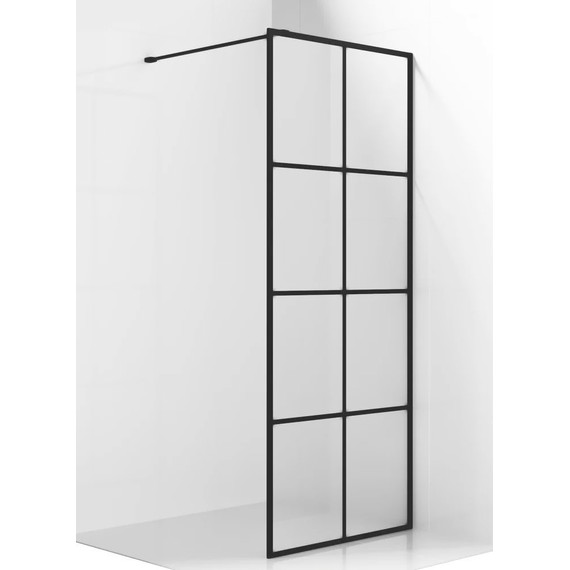 Душевая перегородка Ambassador Walk-in с кронштейном, размер 895х2000 мм, профиль чёрный, стекло прозрачное. Ширина входа 1000 мм.