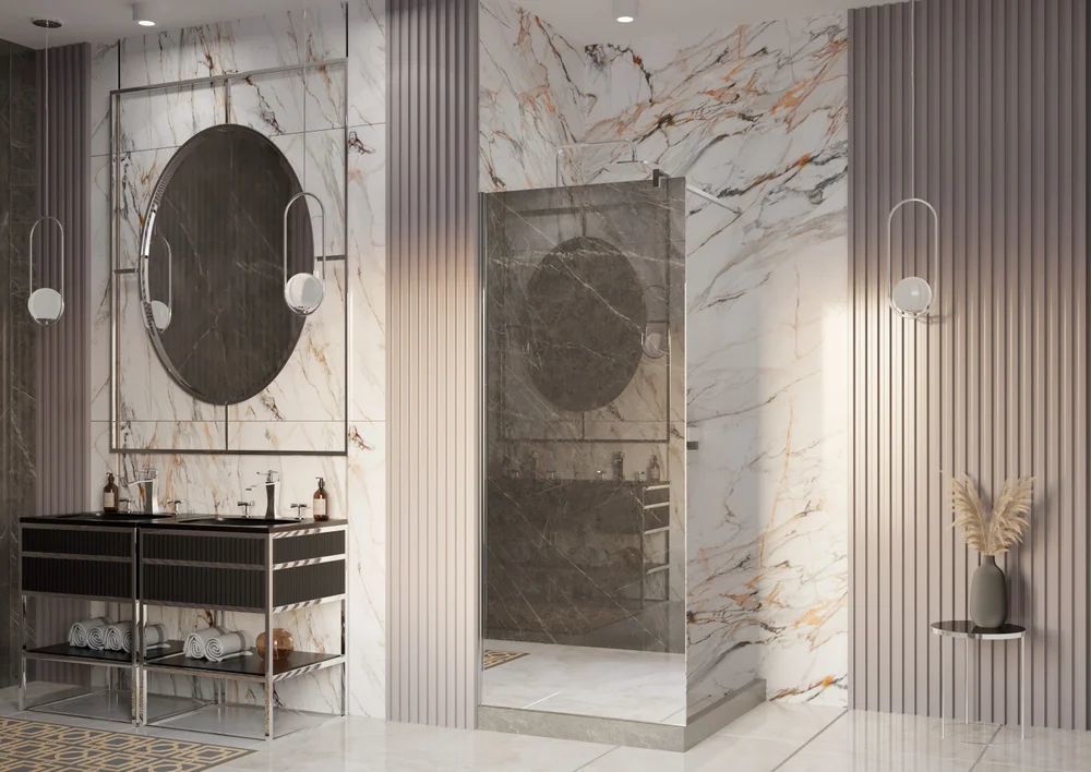 Душевая перегородка Ambassador Walk-in с кронштейном, размер 900х2000 мм, профиль хром, стекло зеркальное. Габариты регулировки (890-900)х2000 мм, ширина входа 1000 мм.